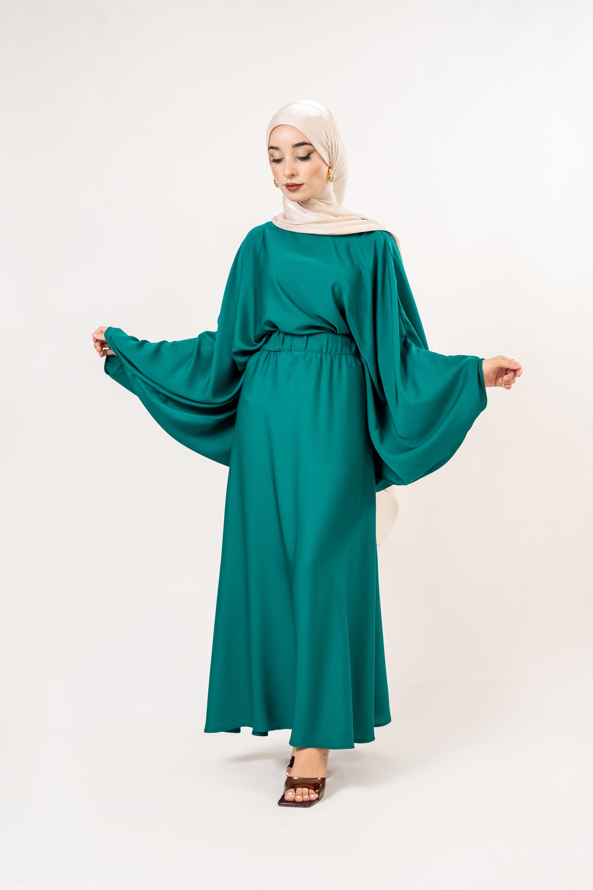 Batwing style blouse. The blouse is the same for all sizes. Only the skirt waist size varies. Skirt length is the same for all sizes