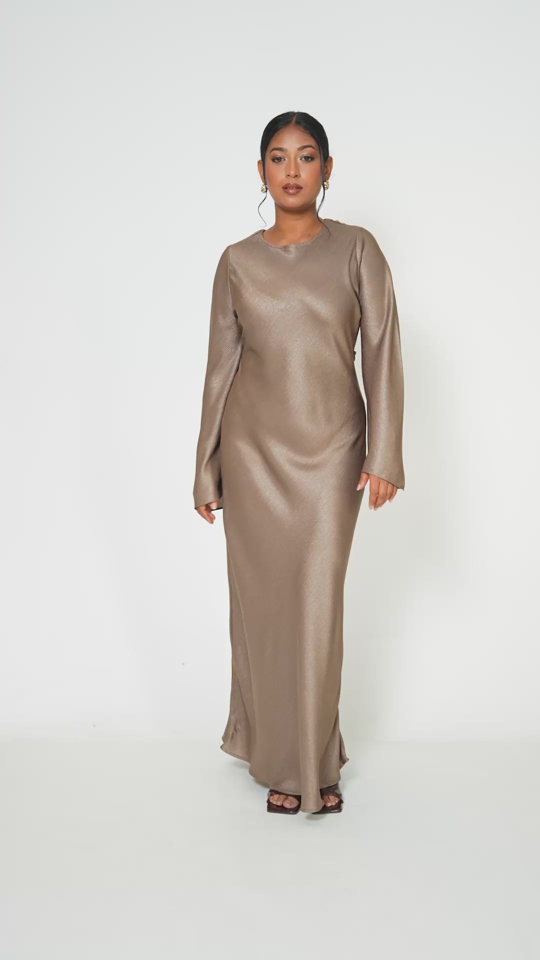 Shimmer Bias Slip Dress- Mink