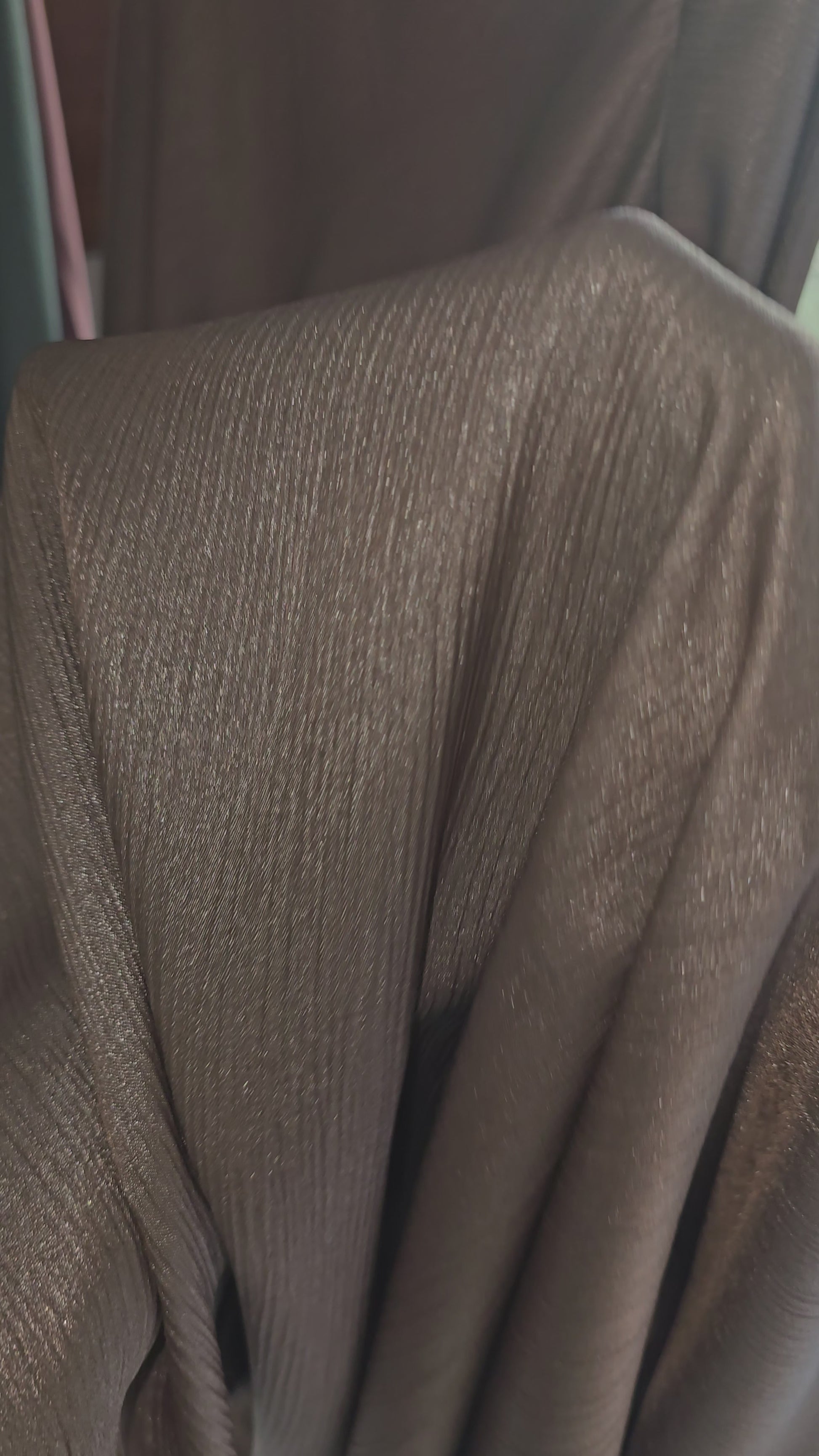 This is a bias cut dress made of shimmery satin fabric. The shimmers show up under light. Comes with a separate belt which can be removed if preferred.