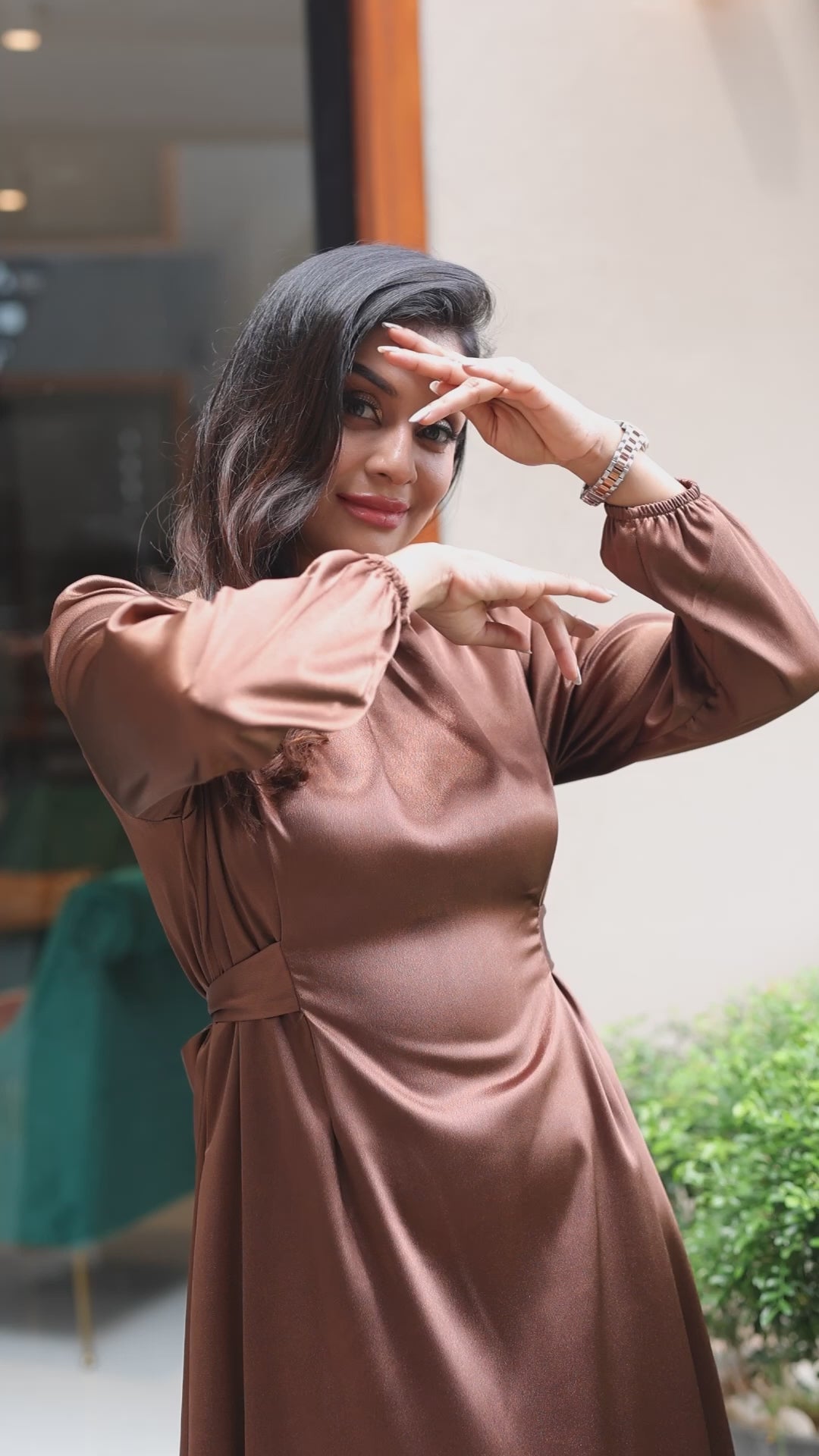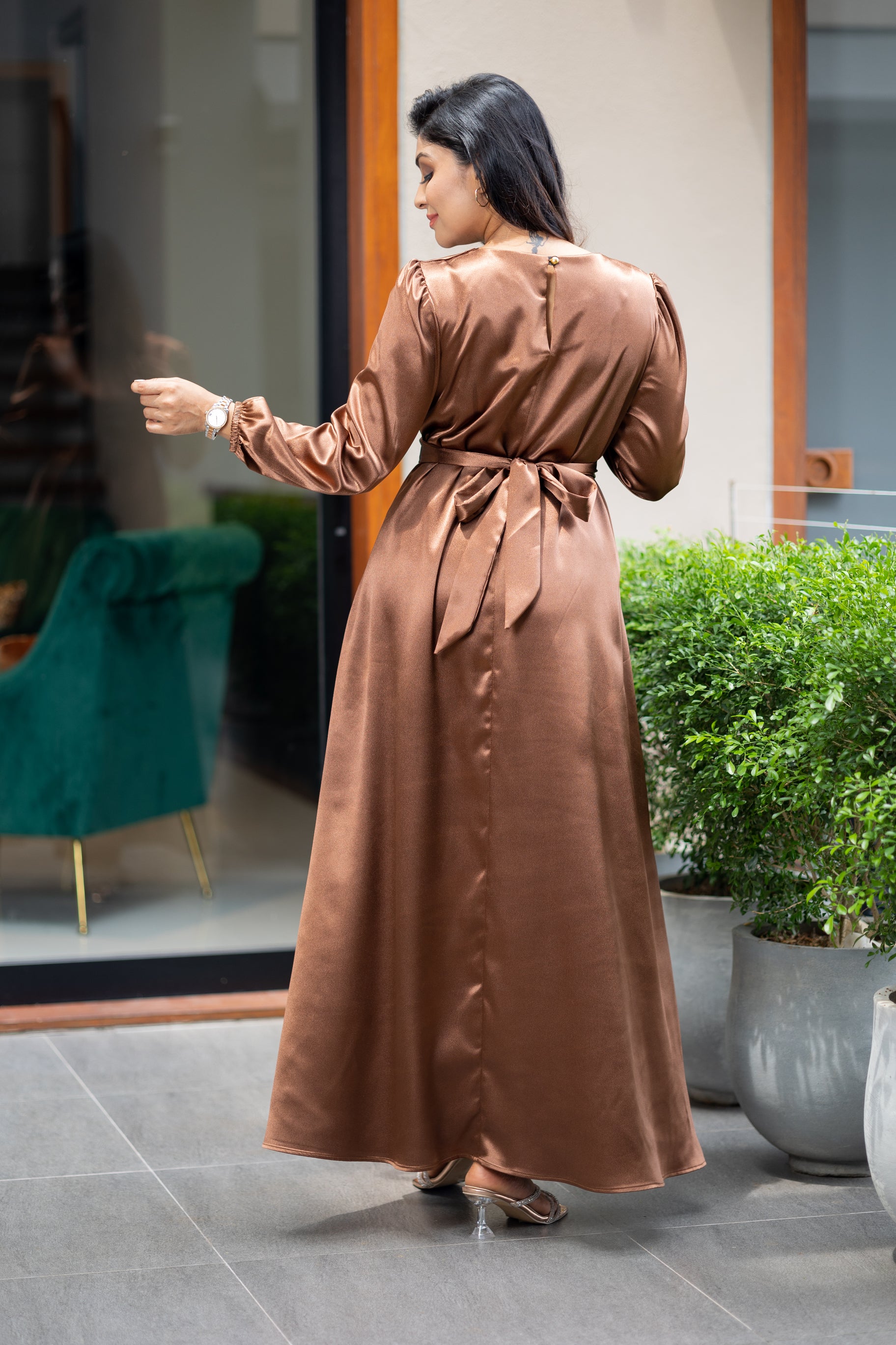 Bronze Satin Tie-waist maxi