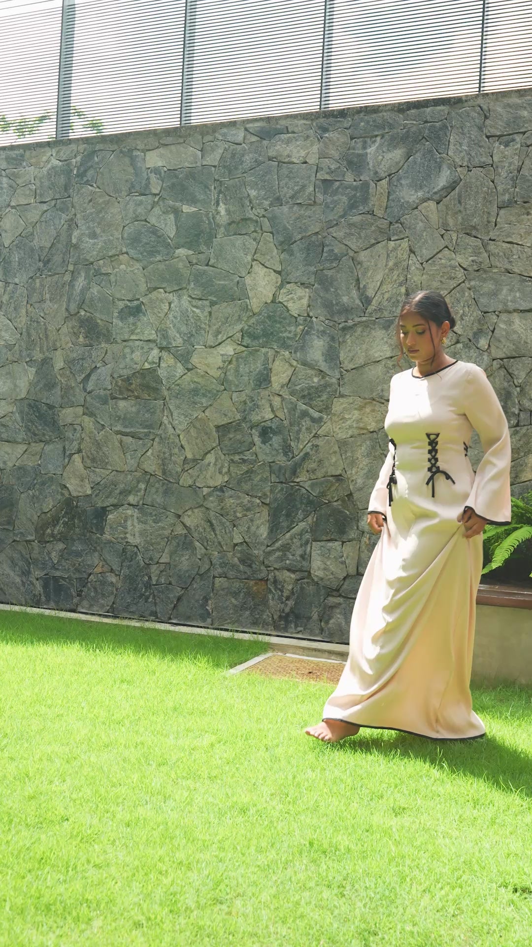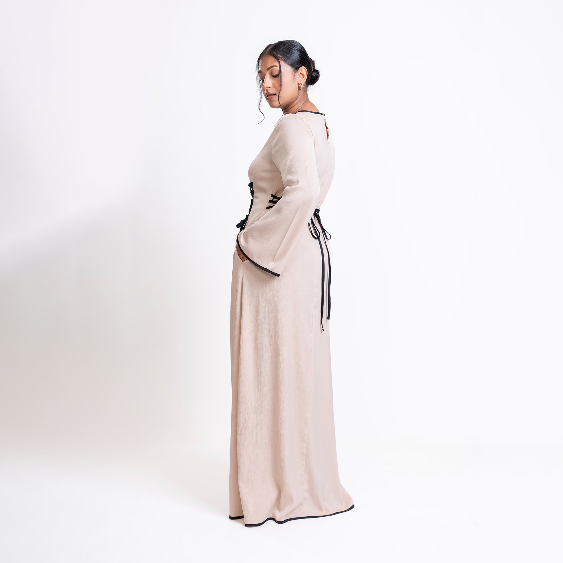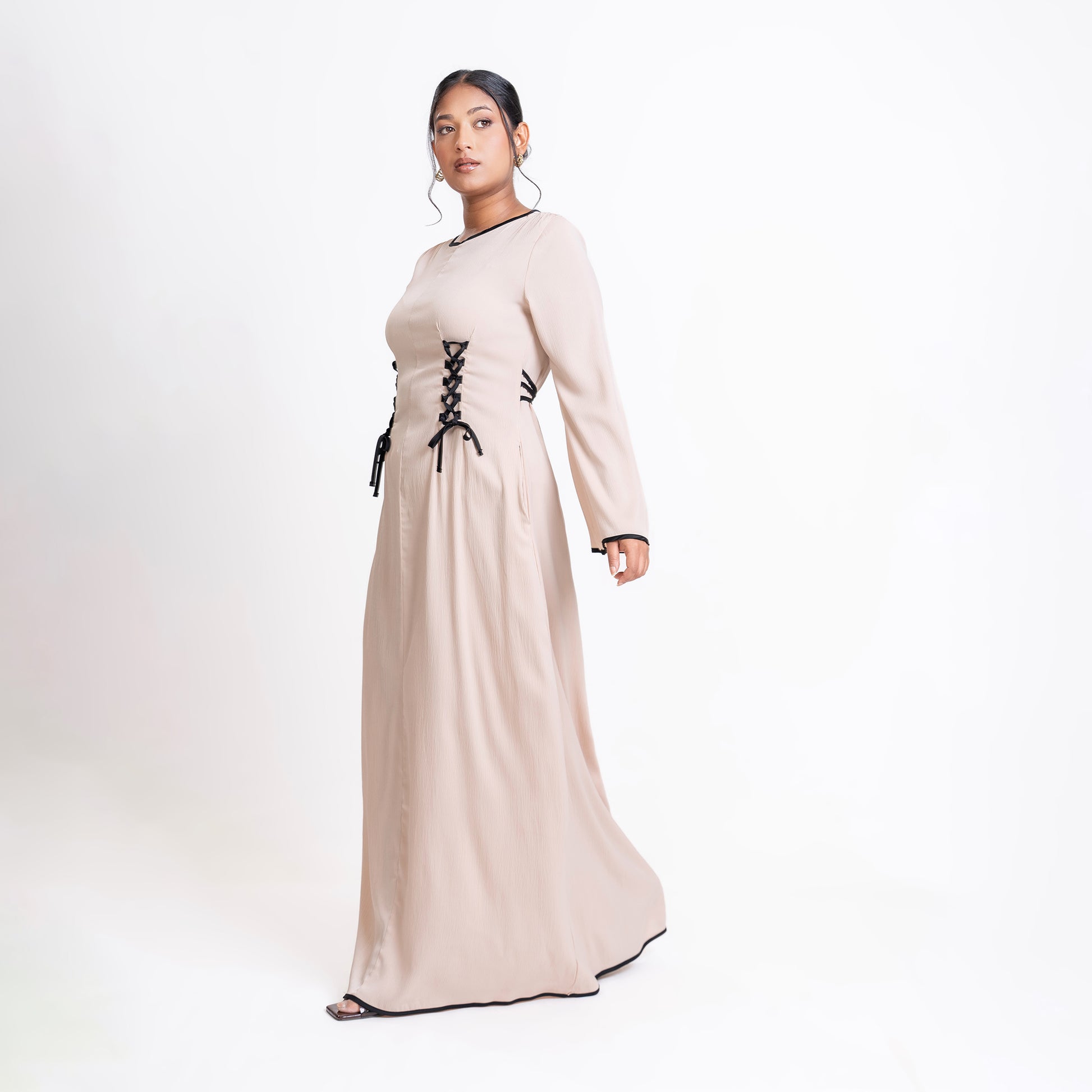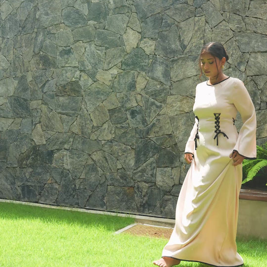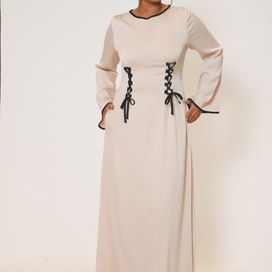 Cream and Black detail Front-lace dress