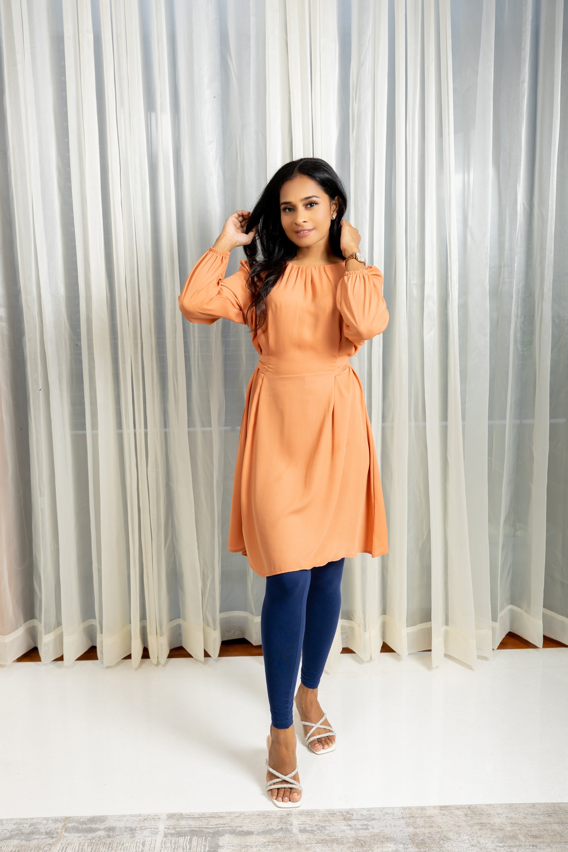 Peach shaded short dress/ top. 36 inches in length. Georgette fabric